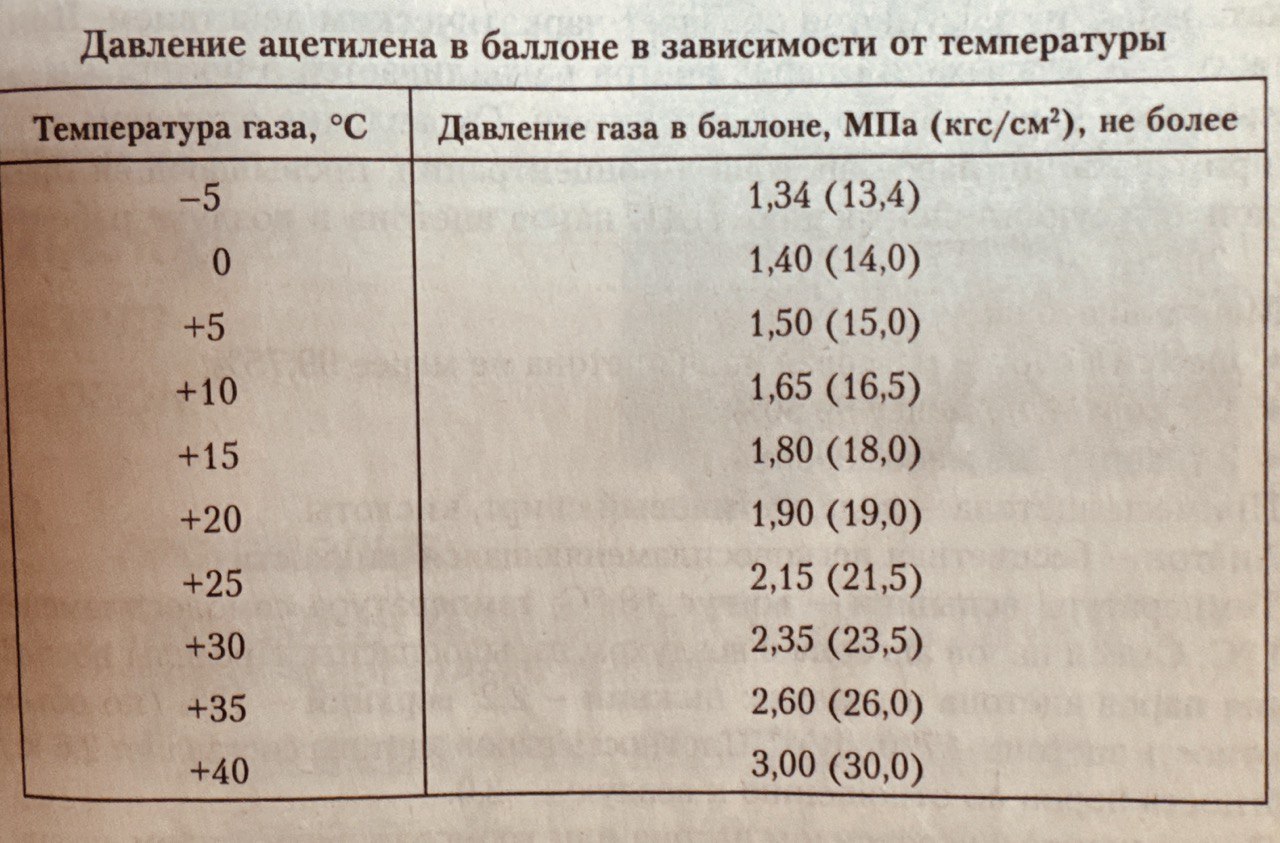 Ацетилен чаще других горючих применяется для сварки и резки; он дает наиболее высокую температуру пламени при сгорании в кислороде (3100- 3200 °С). Без ущерба качества и производительности только для резки ацетилен заменяется другими горючими газами - пропаном, метаном, парами керосина и др. Технический ацетилен бесцветен, за счет содержащихся в нем примесей обладает резким неприятным запахом, в 1,1 раза легче воздуха, растворяется в жидкостях. Находясь под давлением 0,15-0,20 МПа, взрывается от электрической искры или огня, а также при быстром нагреве свыше 200 °С. При температуре выше 530 °С происходит взрывчатое разложение ацетилена.